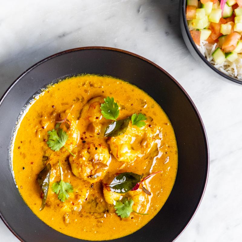 Wild Argentinian shrimp simmered in rich coastal coconut curry.